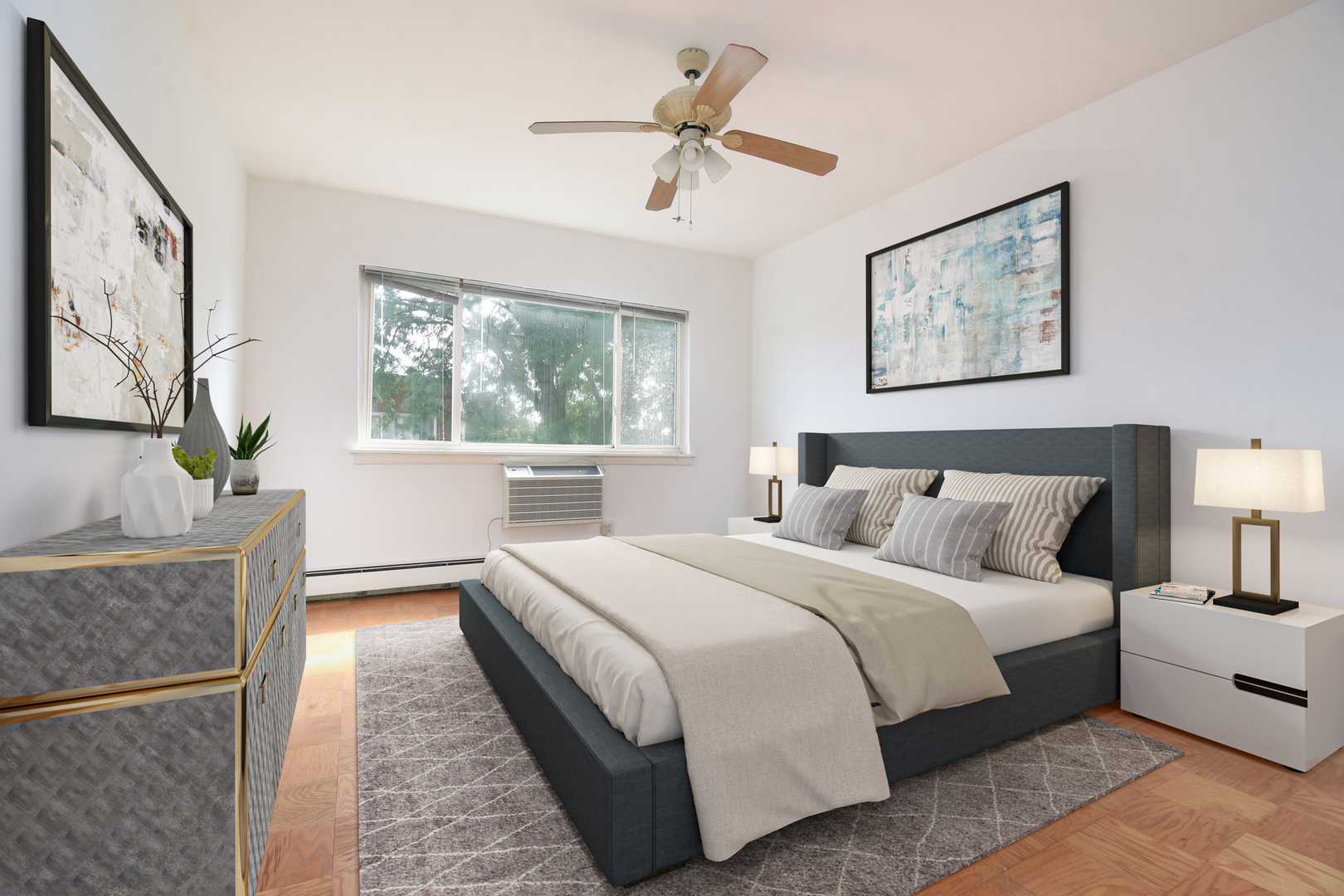 Welcome home to this sun filled and inviting condo offering a thoughtful layout and comfortable living. The open-concept living and dining area is filled with natural light, and amazing parquet flooring, leading to a well-appointed kitchen perfect for everyday meals or entertaining. The private primary suite features a generous closet and en-suite bath, while the second bedroom and full bath provide flexibility for guests or a home office. Additional highlights include in-unit laundry, garage parking, and a generous storage unit. In this well-maintained building in a convenient Skokie location close to shopping, dining, parks, and transit theres nothing to do but move right in!